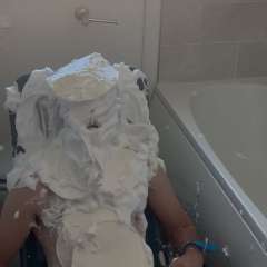 StagedStooge got a custard-filled balloon busted over his head by michiganpie1